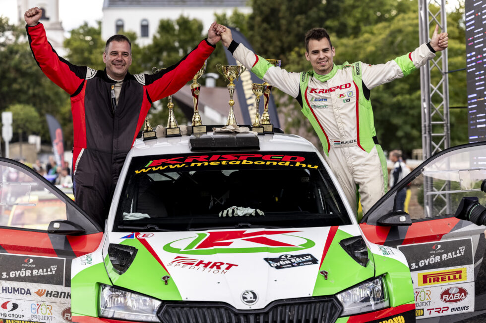 A két rivális mögött szombaton nagy csata zajlott a harmadik helyért, de nap végén már 10 másodperces előnyt épített ki a hazai pályán versenyző Klausz Kristóf és Kertész Krisztián. Vasárnap a hatból öt szakaszon harmadik időt autóztak és magabiztosan értek célba a harmadik helyen.